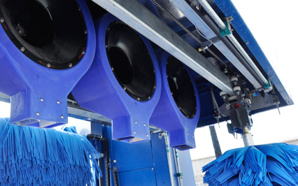 進口意大利塑玻絲輪刷,根據(jù)光電開關感應判斷車身位置,輪刷啟動至輪轂位置,開始清洗,正反旋轉刷洗輪轂,電腦洗車機全程電腦全自動控制輪刷伸縮。
